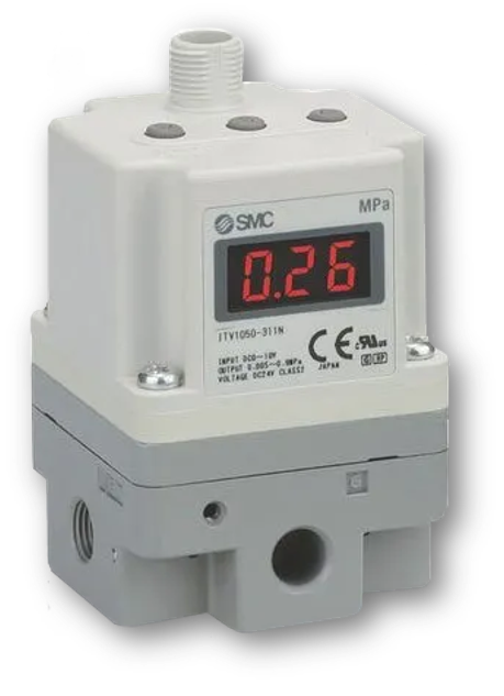 into Pneumatic pressure. In this context, it receives control signals, possibly from a PLC (Programmable Logic Controller) or another control system, and translates them into the appropriate pneumatic pressure levels.